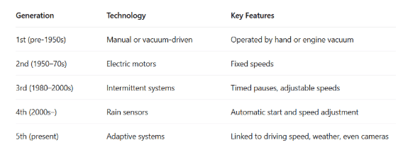 Windscreen wipers are now part of an intelligent system. They’ve evolved from simple levers to smart, adaptive tools: