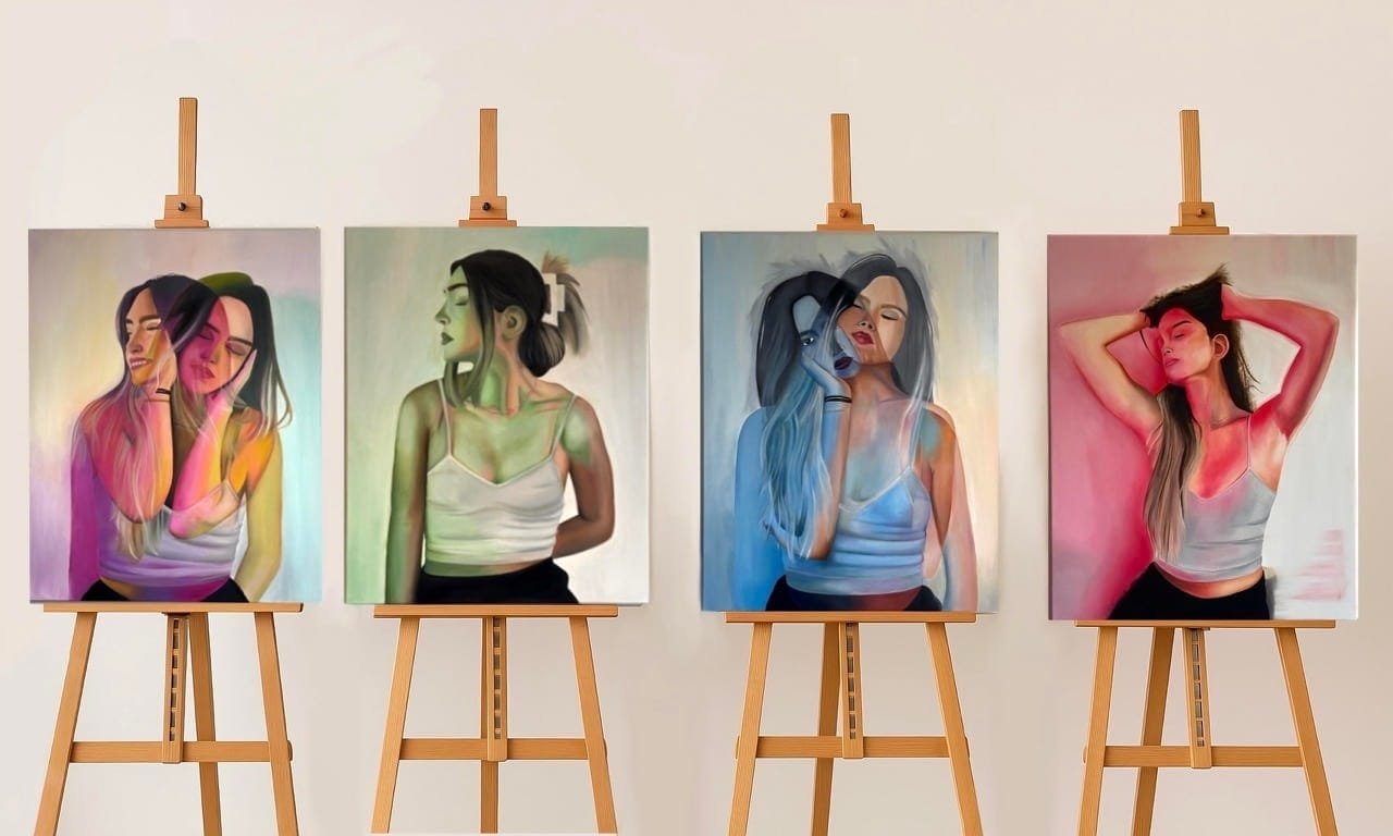 Most of my work stems from deep internal emotions and personal experiences. In this collection specifically, I explored feelings of being lost, confused, and the emotional weight of searching for one’s path. I also reflected on the emotional realities that many women experience: societal pressures, inner anxieties, and the complexities of self-expression. What made this journey even more meaningful was witnessing how people from different ages and backgrounds deeply connected with the work. I took my pieces into the community and observed how people responded, not just passively, but with curiosity and emotion. It was powerful to realise that these paintings communicated something that words often could not.