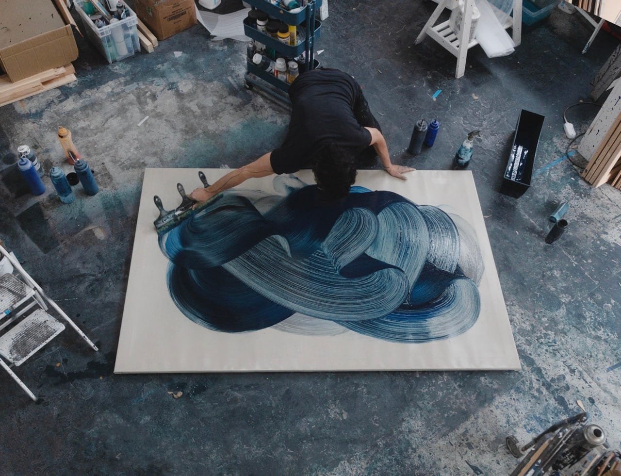 For me, the tools I use are fundamental to the work itself. I work with the basics: the surface, the paint and the brush. Each one of these elements have to be designed with intention to achieve the kind of result I’m aiming for. When it comes to the brushes, it’s not just about function – it’s about how the tool interacts with the paint and the surface, how it shapes the marks and how it feels in my hand.