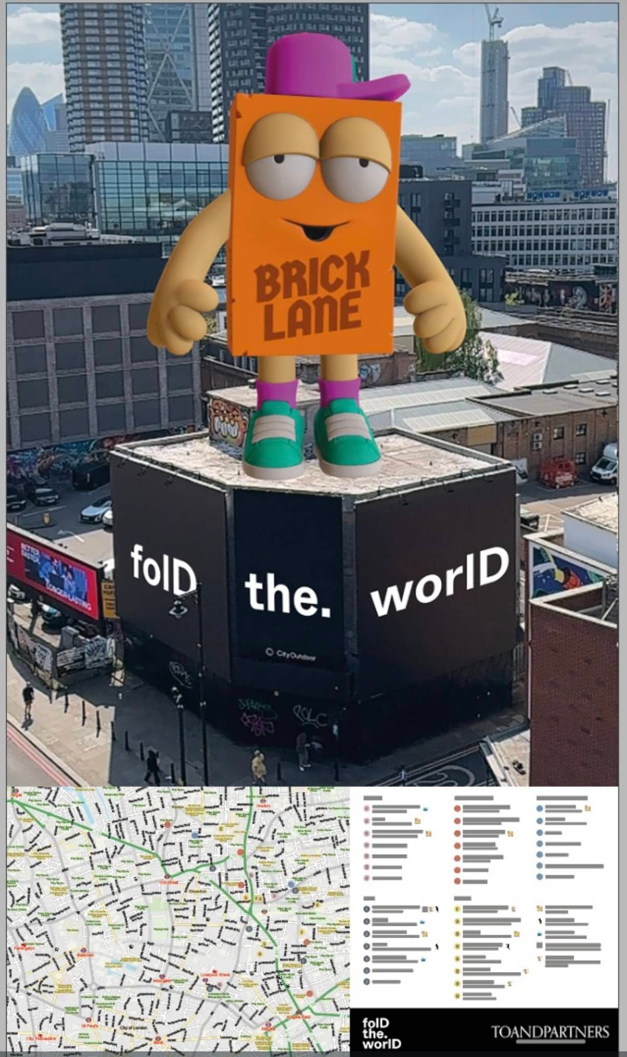 Foldthe.world isn’t just a printed map—it incorporates Mr Brick, an AR game woven into the experience. How does this playful tech layer complement the physical map and deepen engagement with Shoreditch’s creative scene?