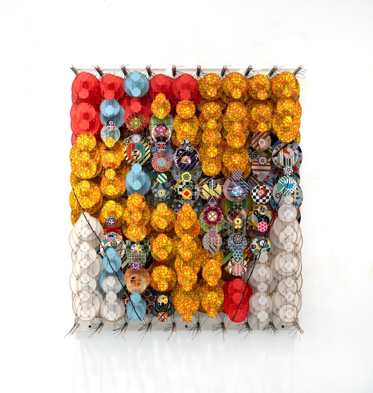When I’m assembling the pieces I don’t follow a strict drawing. It’s a loose, intuitive process, much like painting. I compose in real time, responding to colour, rhythm, and form. Even though the final pieces can look very structured or architectural, especially in this show at Ronchini, the process is actually quite organic. There’s always a tension between structure and accident, between intention and improvisation. That’s where the magic happens.